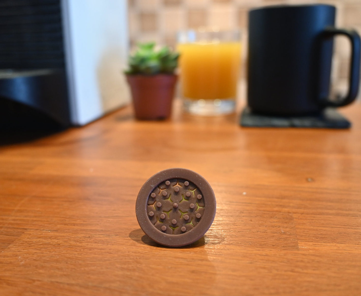 L'autre opercule beige avec seulement 2 trous est fait pour les moutures grossières de type café filtre. Ce dernier permet de faire monter la pression dans la capsule. Cependant, certaines machines ayant déjà vécu pourraient ne pas être assez puissantes pour vous offrir un bon débit. Dans ce cas, n'utilisez que le premier bouchon. -