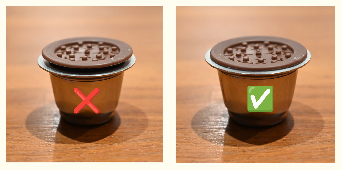 7) Pour obtenir le meilleur café il est important de bien plaquer l'opercule sur les bords de la capsule pour garantir une bonne étanchéité.
