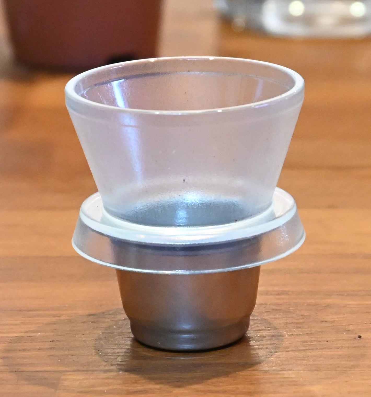 13) Rincez la capsule et le bouchon sous un mince filet d'eau afin d'éliminer le marc restant.