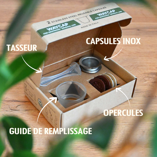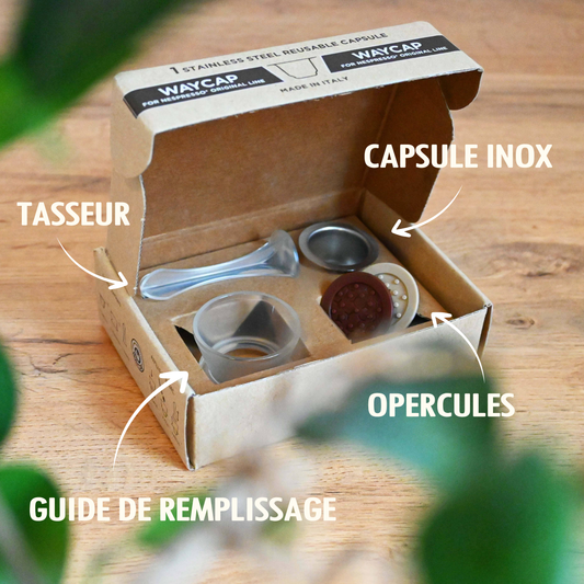 Cependant, la capsule en inox et l'opercule en silicone sont réutilisable à l'infini ♻️ ! Seul le joint marron de la capsule doit être changé au bout de quelques années grâce aux pièces de rechanges fournis dans le kit.